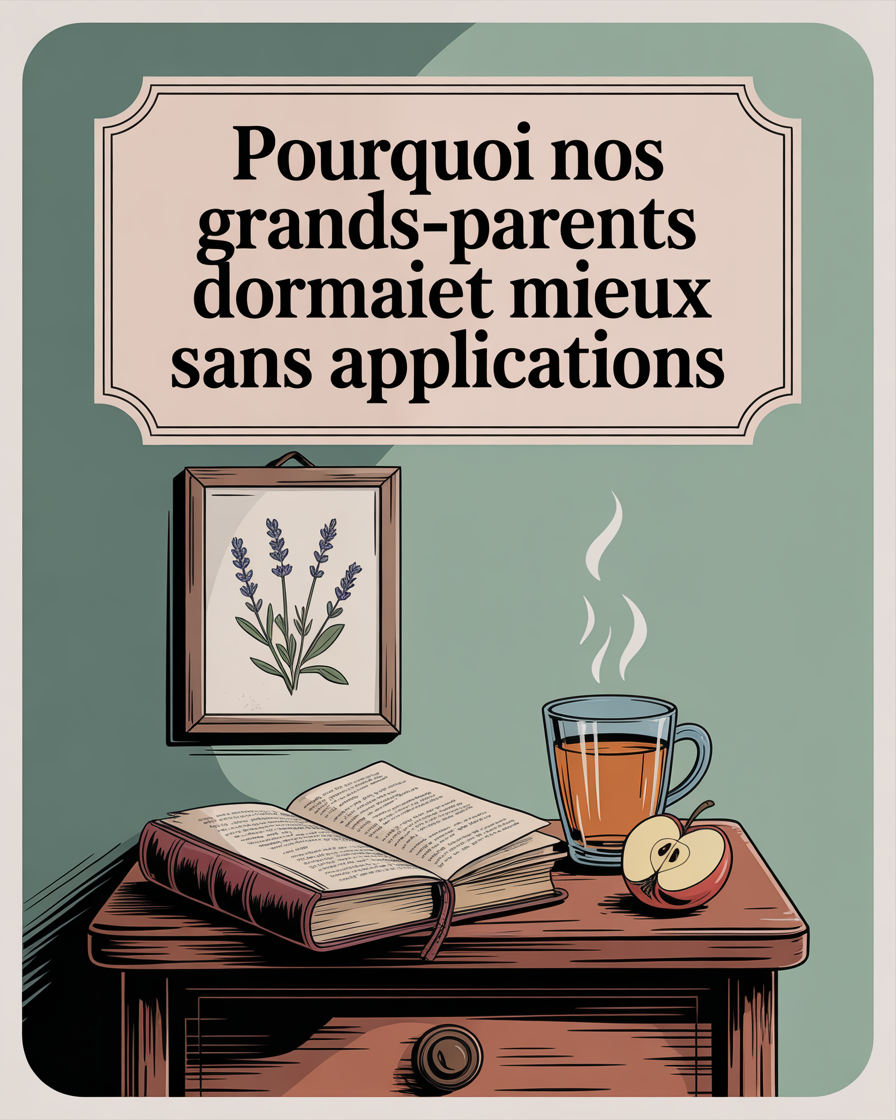 Je ne faisais pas attention à ça avant, jusqu’au jour où j’ai essayé de m’endormir sans mon téléphone et toutes ces applis soi-disant magiques pour bien dormir. Etrangement, j’ai retrouvé un sommeil plus profond et plus naturel. Cela m’a rappelé combien nos grands-parents, sans ces outils numériques, semblaient pourtant dormir plus calmement et se réveiller plus reposés. Alors, pourquoi ce décalage ? Avec un peu de recul, je réalise qu’ils avaient une approche beaucoup plus simple mais efficace, loin des écrans et des notifications. Je vous propose de redécouvrir ensemble cette manière d’aborder le sommeil.